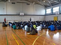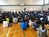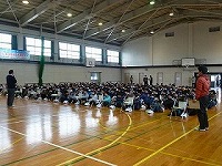 この4月より、新一年生となる小学校の卒業生が、今日3月23日に予備登校として常磐中学校に来ました。つい先日、小学校を卒業したばかりの初々しい生徒たちは、少し緊張した様子で、中学生となる心構えや、中学校での生活について話を聴きました。
