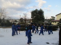 20日(水)にも雪が降りましたが、今日25日(月)も大雪にみまわれました。しかし、部活動時間には晴れたので、活動をすることができました。まだ溶けずに残る雪を見て、生徒たちは大はしゃぎ。あまりにも楽しそうなので、思わずシャッターを切ってしまいました。仲間と居ると、どんなことも楽しいんだなぁ。