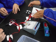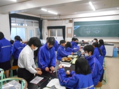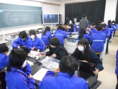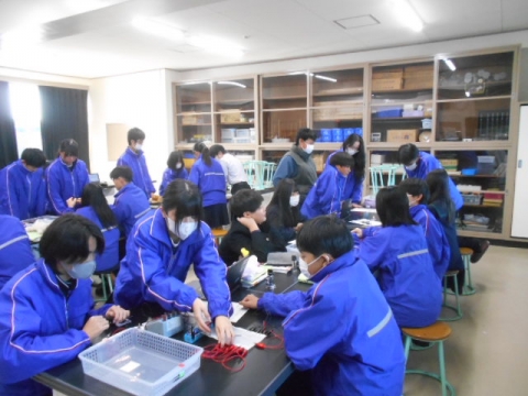 2年生理科の授業の様子です。この時間は、加える電圧を変化させたときに流れる電流の規則性について考えました。