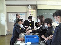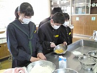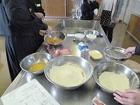 本日17日3限目に生活学級の理科の授業で「ふんわりケーキを作ろう」という実験を調理室で行いました。