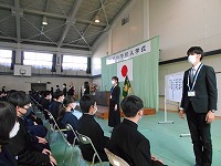 本日午後から、1年生の入学式がありました。新しい制服に身を包み、緊張した様子での登校でした。校長先生から、良い習慣の生活や、夢や目標を持つことの大事さを話していただきました。1年生代表の誓いの言葉は、3年間のスタートに立った、これから頑張ろうという意欲が伝わる素敵な内容でした。