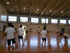 チームでサーブやトスなどの技術練習の中で、タブレットPCで動きを撮影しあい、動きの修正を試みたり、互いにアドバイスをしたりするなどしました。