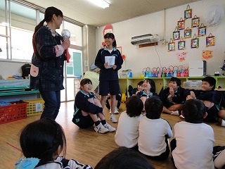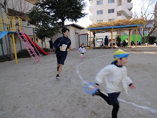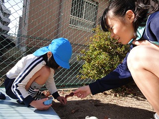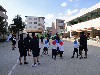 園庭は隣の建物の陰になり、じっとしていると震えるような寒さでしたが、パワフルな園児に負けじと生徒たちも一緒にドッジボールを楽しそうにするクラスもありました。