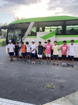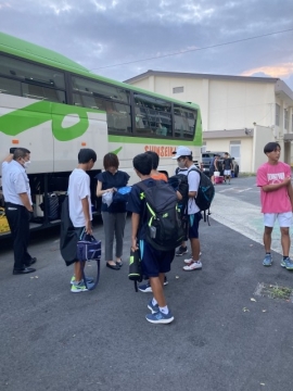今朝、全国大会が行われる高松に向けて、男子テニス部が出発しました。出発式ではキャプテンから「まずは、一勝めざしてがんばります!」と挨拶がありました。