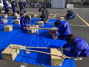 地域・保護者の皆さんと学校づくりビジョンを共有し、学校・家庭・地域が一体となって子どもたちを育む『地域とともにある学校』づくりを進めていきます。運営協議会の活動の中に、学校・地域の協働した取組を通じて、地域づくりに貢献したり、人とのつながりを深めたりする活動があります。昨年度から引き続き、常磐地区社会福祉協議会子ども支援部が開催している伝承文化(昔遊び)交流会に使用する『竹馬づくり』に有志のボランティア21名が参加しました。今年度は、昨年度の竹馬を修理調整するという作業をしました。出来上がった竹馬に乗ってみて確認し、ボランティアに参加した皆さんも懐かしがっていました。出来上がった竹馬が、伝承文化交流会で活躍することが楽しみです。