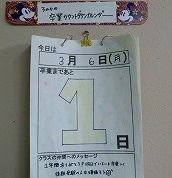 明日はいよいよ卒業式です。カウントダウンカレンダーも「1日」となってしまいました。