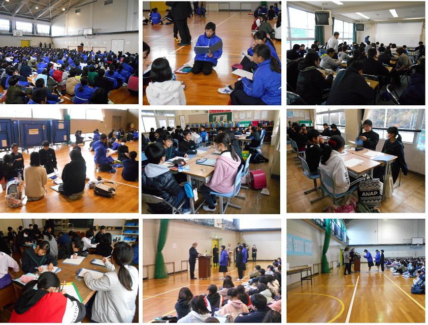グループ討議では各教室に分かれ、それぞれの児童・生徒をグループごとにワークシートをもとに意見を交流しました。