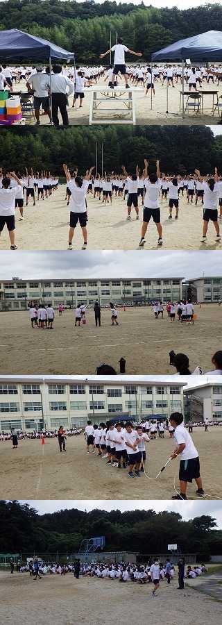 いよいよ体育祭が来週の火曜日に迫ってきました。雨後のグラウンドの水取りをして体育祭の全体練習を行いました。招集や入退場や係の連携がスムーズに行えるよう競技以外のところも気を抜かず取り組みましょう。