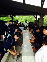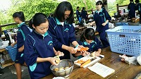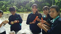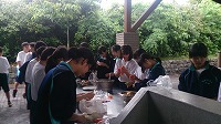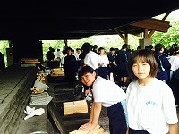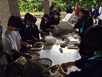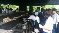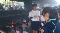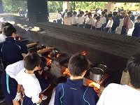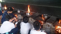 この野外炊飯では、班別にお昼に食べるカレーを作ります。