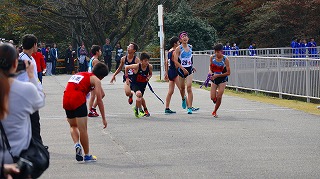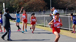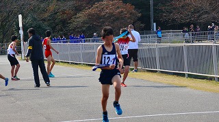 男子は、一区で3位と上位でスタートしました。その後、順位を下げながらも入賞圏内を狙える位置をキープし、一時5位まで順位をあげました。結果は7位で、惜しくも県大会(6位以内)出場は逃しましたが、大健闘でした。