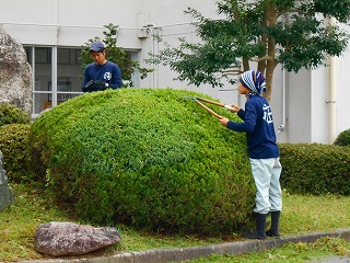 四日市農芸高校の環境造園科9人の高校生が、校内の樹木選定を行ってくれました。