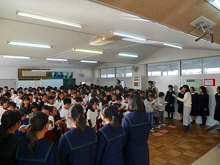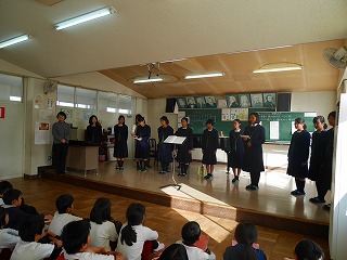 音楽部が、常磐西小学校を訪ねて合唱を披露しました。