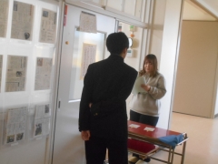 面接官、受験者、記録者の役割を決め、面接を行いました。