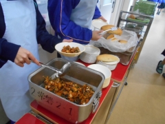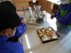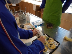 家庭科で「幼児のおやつ調理実習~お総菜パン~」を行いました。