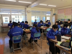 また、それでも寒い生徒はウインドブレーカーを着て授業を受けています。外はとっても寒いのですが、教室では快適な状態で授業を行っています。