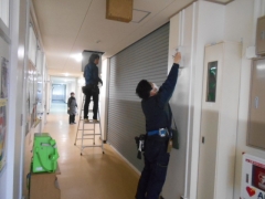 防火扉、防火シャッター、煙検知器などの防火設備の動作確認や点検、整備をしていただきました。