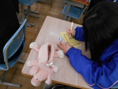 5時間目は「ありがとうメッセージ」を書きながら、思い出話に盛り上がっていました。