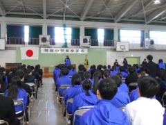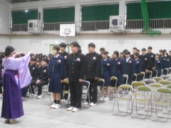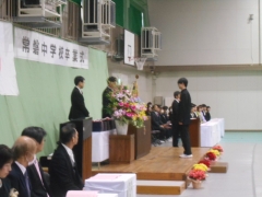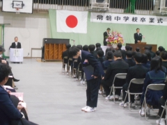 中学校三年間の課程を終えられ、義務教育九年間を修了されました。さぞや感慨もひとしおだと拝察いたします。この三年間、本校にお寄せくださいました、ご理解とご協力に対しまして心より御礼申し上げます。
