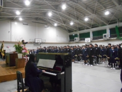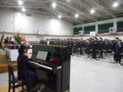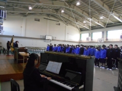 開式の辞、国歌斉唱、校歌合唱