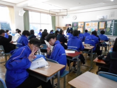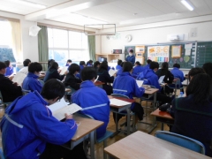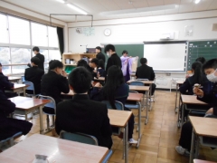 学活(通知表が配付されました)では、担任の先生からこれから旅立つあなたたちへ贈る言葉や思い出話などあたたかい時間が流れていました。
