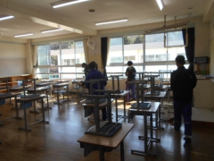 3年生の教室、教室前廊下、階段等の掃除を行いました。