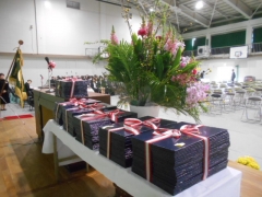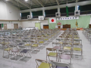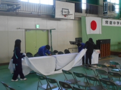 白布をかけたり、受付設営、座席の調整など卒業式会場の仕上げを行いました。