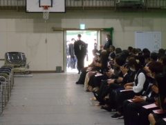 証書授与では自席から証書授与、自席に戻るまでの歩き方の確認とともに動作の練習をしました。