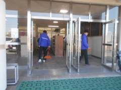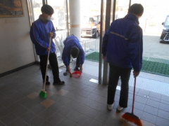 今日の掃除時間の様子です。ついこの前まで北よりの風が強く吹き、とっても寒く感じたのですが、今日は生徒玄関の扉を大きく開けると、春の風が気持ちよく吹き抜けました。