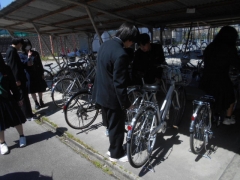 常磐中は校区が広いため、多くの生徒が自転車で通学しています。