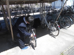 サドルの高さ、ベル、ライト、反射板、ブレーキ、荷台、タイヤなどの点検を行いました。