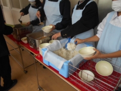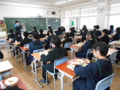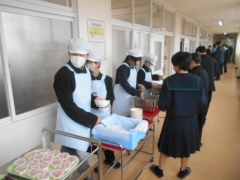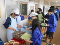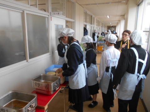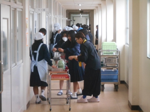 今日から給食がスタートしました。初めての給食でしたが、とても手際よく準備、配膳、喫食と進みました。小学校6年間の経験が生かされていました。GOOD!!