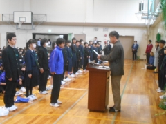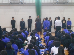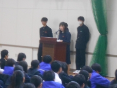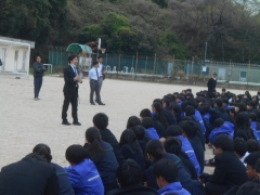 毎年、常磐中学校の生徒が関係する交通事故が発生することや、地域からご心配の連絡があることなどを生徒に伝え、改めて交通安全に対する心構えを確認しました。