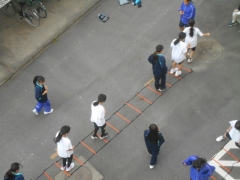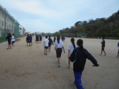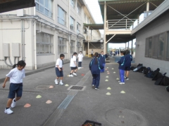担任の指示により、集合・点呼まで5分以内を目標とし避難開始!