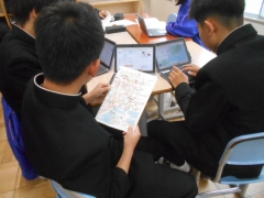 修学旅行に向けて、学活や総合的な学習の時間を使って、班別分散学習の計画を立てています。