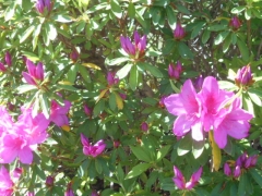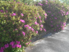 陽春の好季節、生徒玄関前のツツジが咲き始めました。