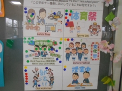 (常磐中の英語のボード)を紹介します。製作者は、今年度、常磐中に着任したYEFのKARI(キャリー)先生です。