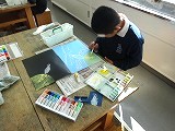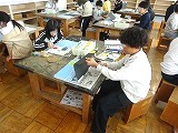 色版画は、作図の場所に合わせて色を付けなくてはいけないので、丁寧な作業が求められます。どの人も色付けや位置合わせを真剣な表情で取り組んでいました。