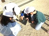 今日は、太陽の光を集めた時のあたたかさと明るさの学習をしていました。虫眼鏡で集めた太陽の光が、黒い紙に穴が開けると、たくさんの人が歓声をあげていました。また、その燃えた臭いに「花火と一緒の臭いや~。」などと、感じている人もいました。