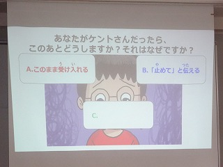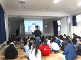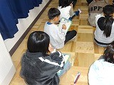 農業センターの部屋でお話を聞いた後、2つのグループに分かれてサツマイモに関するクイズをしていただいたりサツマイモを潰す作業を行うアイスクリーム作りを体験させていただいたりしました。できたアイスクリームを食べると、サツマイモの味がしっかりして、子どもたちの笑顔があふれていました。 サツマイモの苗植えから収穫、そしてアイスクリーム作り体験まで色々とご協力いただいた農業センターのみな様に御礼申し上げます。