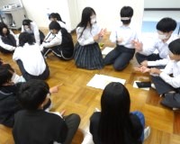 中学生の人が、グループリーダーとして学習を進めました。まず「アドジャン(ケン)」(ジャンケンのように一人ひとりが指を出し、その合計の1桁の数字に書かれたお題について、自分の考えを紹介をします。)をして、アイスブレイクの時間を取りました。その後、テーマ(上の写真)に合わせて、「あってもよい違い」か「あってはいけない違い」かを、数直線上に自分の名札を置きながら、そう考えた理由を出し合いました。中学生も6年生の人たちも、笑い声が出るくらいリラックスして取り組めていたグループもありました。