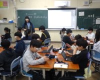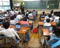 本日、市より貸出された新しいタブレットを、2年生以上の学年で配布し、各クラスで設定をしたり使い方を指導したりしました。