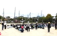 学年が変わって初めての訓練のため、避難経路と避難時の集合場所などを確認しました。避難時には、慌てず歩いて避難できていましたが、声を出してしまった人もいました。
