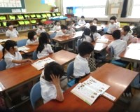 今日は、高学年のクラスで読み聞かせを行っていただきました。子どもたちは、絵本にとても集中して話を聴いていました。