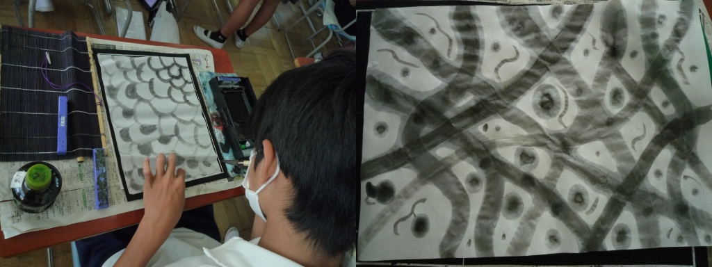 今日は6年生で「水墨画」に取り組んでいました。