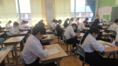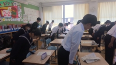 写真からもしっかりとメモをとって記録に残し、職場体験学習にいかしていこうという気持ちが伝わります。「人の行動は意識1%・無意識99%」ということも教えてもらいました。また、「日々の学校生活で実践し、習慣化され、職場体験学習で無意識にできるようになるといいですね。」と激励のメッセージも篠田さんからいただきました。