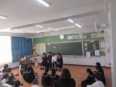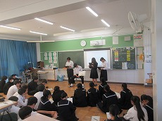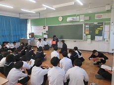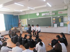 職場体験学習の一環として、(株)マナーマネジメント名古屋の篠田さんに来ていただき、「すぐに役立つ!職場体験前のマナー講座」を行いました。