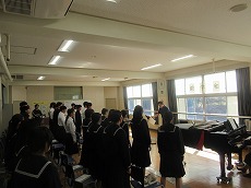 1限目は体育館に入って学年全体でマナーの重要性やあいさつの仕方について、2限目以降は各クラスであいさつの仕方を復習し、身だしなみや言葉遣いについて、一つずつ丁寧に教えていただきました。
