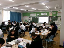今日は、数学、理科、英語、国語、技術、保健体育、美術の授業がありました。教室ごとにグループを組んだり、プロジェクタを活用したり、プリントしたりして、集中して取り組んでいました。毎日の積み重ねが成長につながります。今後が楽しみです。