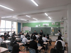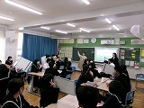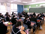 3年生は問題に個別で取り組んだり、グループで話し合って確認したりして、理解を深めていました。また、英語では、英語の質問を班別対抗でパネルに英語で記述して、得点を競う授業を行っていました。どの授業も真剣に受けている姿が見られました。また、卒業式の映像を見て、動きの確認をしていました。