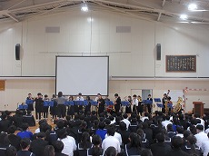 本日、6時間目に「三年生を送る会」を行いました。生徒会の皆さんが運営を担い大変心温まる会となりました。各部からの先輩へのビデオレターから始まり、環境情報部のクイズ、吹奏楽部の演奏、そして最後は「ASAKE OOGIRI TOURNAMENT」で盛り上がりました。三年生の皆さん十分楽しんでいただけたでしょうか。三年生は卒業までいよいよあと一週間です。来週からは式の練習も始まります。